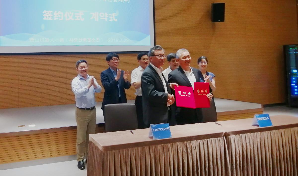 【國辰訊】2019722日,杭州國辰機器人科技有限公司與韓國(株)亞進EXTEK合作成立合資公司簽約儀式在蕭山機器人小鎮(zhèn)隆重舉行。蕭山經(jīng)濟技術(shù)開發(fā)區(qū)黨工委委員、管委會副主任徐建中,開發(fā)區(qū)招商局副局長、機器人小鎮(zhèn)工作組負責(zé)人陳笑,浙江省機器人產(chǎn)業(yè)發(fā)展協(xié)會秘書長王國耀,韓國大慶機器人振興社會長金昌浩,杭州國辰機器人科技有限公司首席戰(zhàn)略官王國成、韓國(株)亞進EXTEK常務(wù)崔成赫等出席簽約儀式。